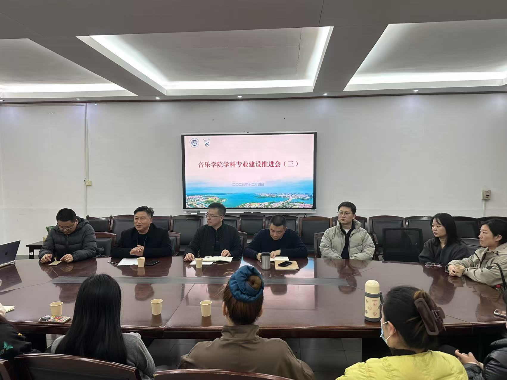 2025年12月4日晚,音乐学院于大会议室召开第三次学科专业建设推进会,学院主持党委工作的副书记喻俊、主持学院行政工作的副院长庞毅、副院长刘栋梁及部分教师出席会议。