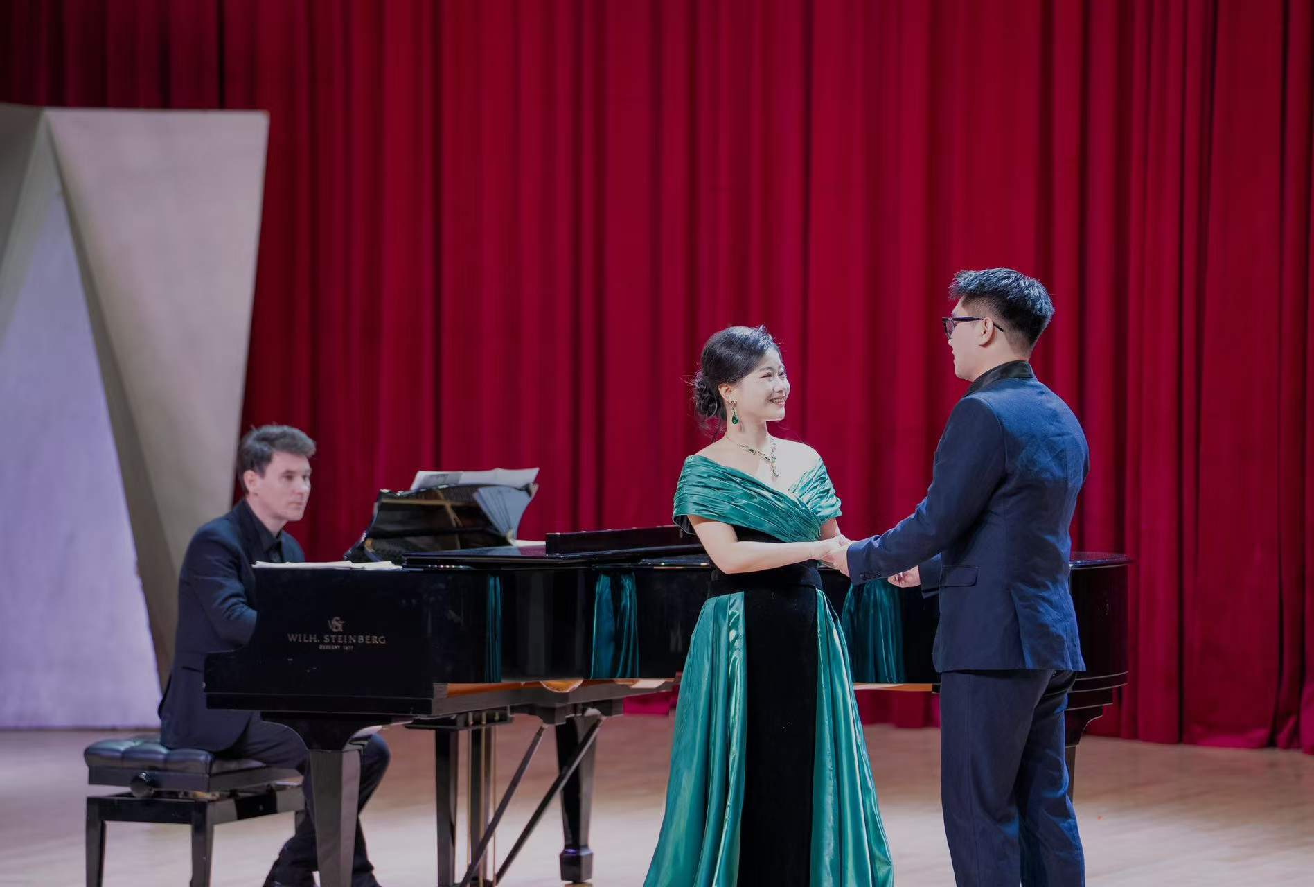 2025年11月21日晚,董箐声乐表演艺术硕士学位音乐会于学院音乐厅顺利举办。本次音乐会由王白菊教授指导,伊利亚•契什科夫担任艺术指导,2024级研究生瞿晓杨主持,特邀2023级本科生郭子源出演,音乐学院部分师生到场观看。