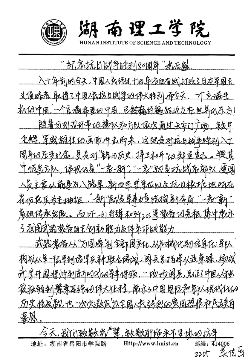 仪式结束后,许多师生自发的撰写了心得体会,表达自己的激动之情与爱国之情。