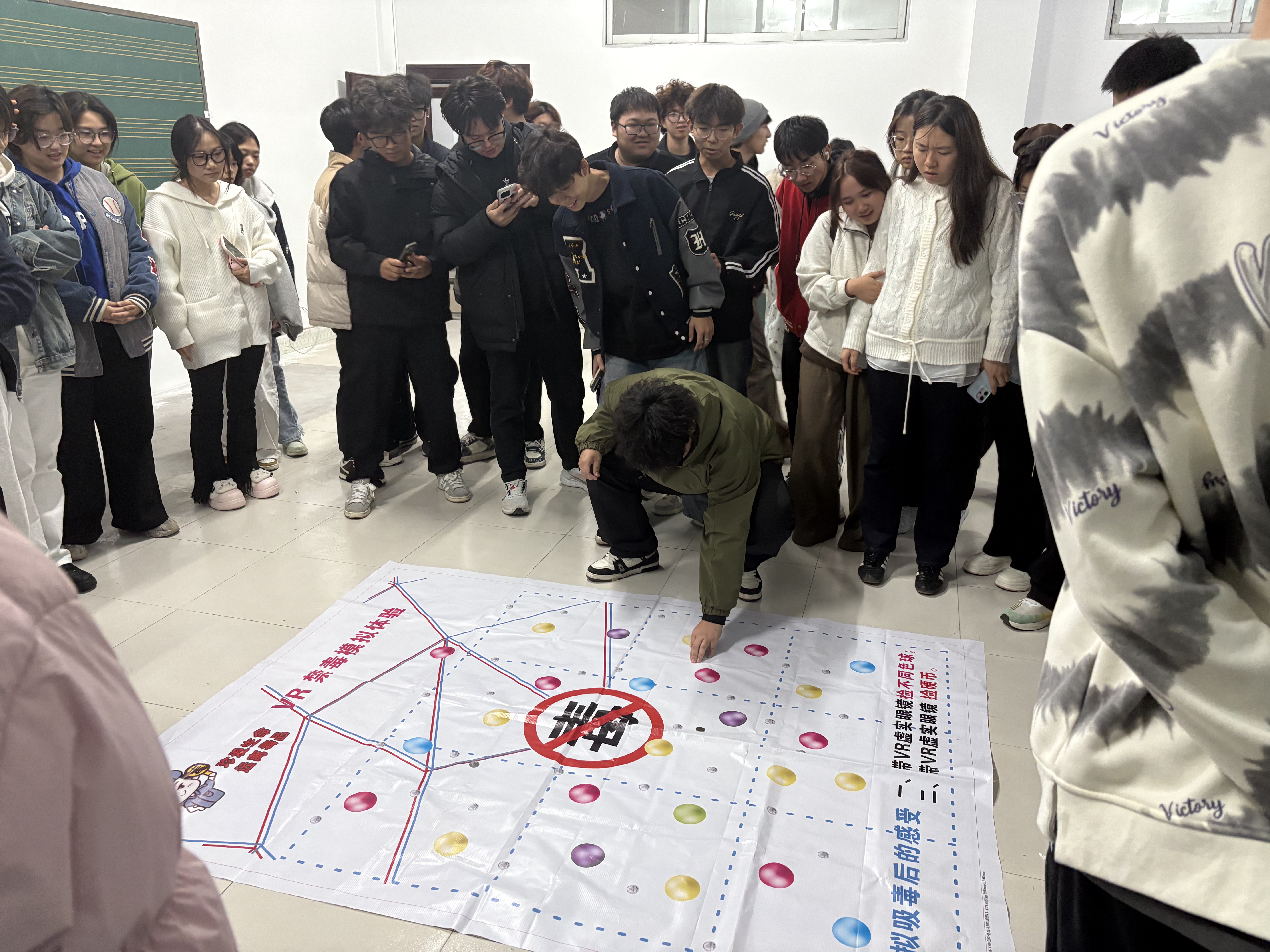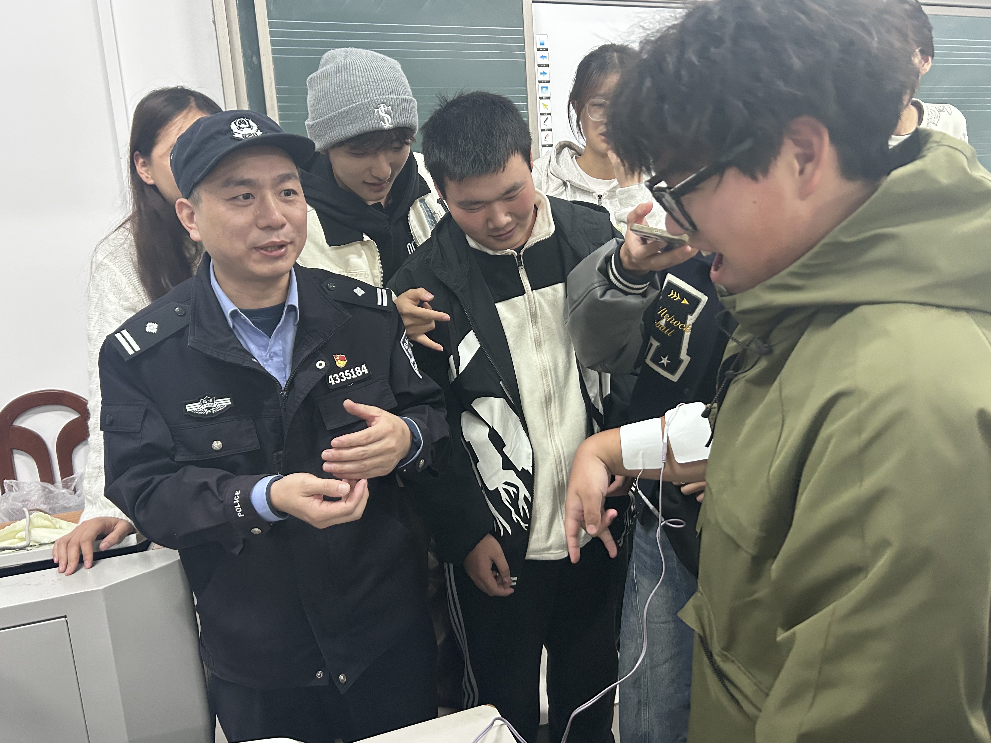 肖警官通过展示仿真毒品模型、发放禁毒宣传资料、开展有奖问答等多种形式,向学生详细介绍毒品的种类、危害及防范措施。生动的讲解与直观的展示,使学生对毒品形成了更深刻的认识。值得一提的是,本次讲座创新引入了AR虚拟体验设备。在肖警官的指导下,同学们分批通过AR技术模拟感受吸食毒品后产生的视觉扭曲、身体失控等不良反应。这种沉浸式体验使抽象的危害变得可感可知,让同学们真切体会到毒品对人身心的摧残,深刻认识到“远离毒品、珍爱生命”不仅是口号,更是每个人必须坚守的底线。