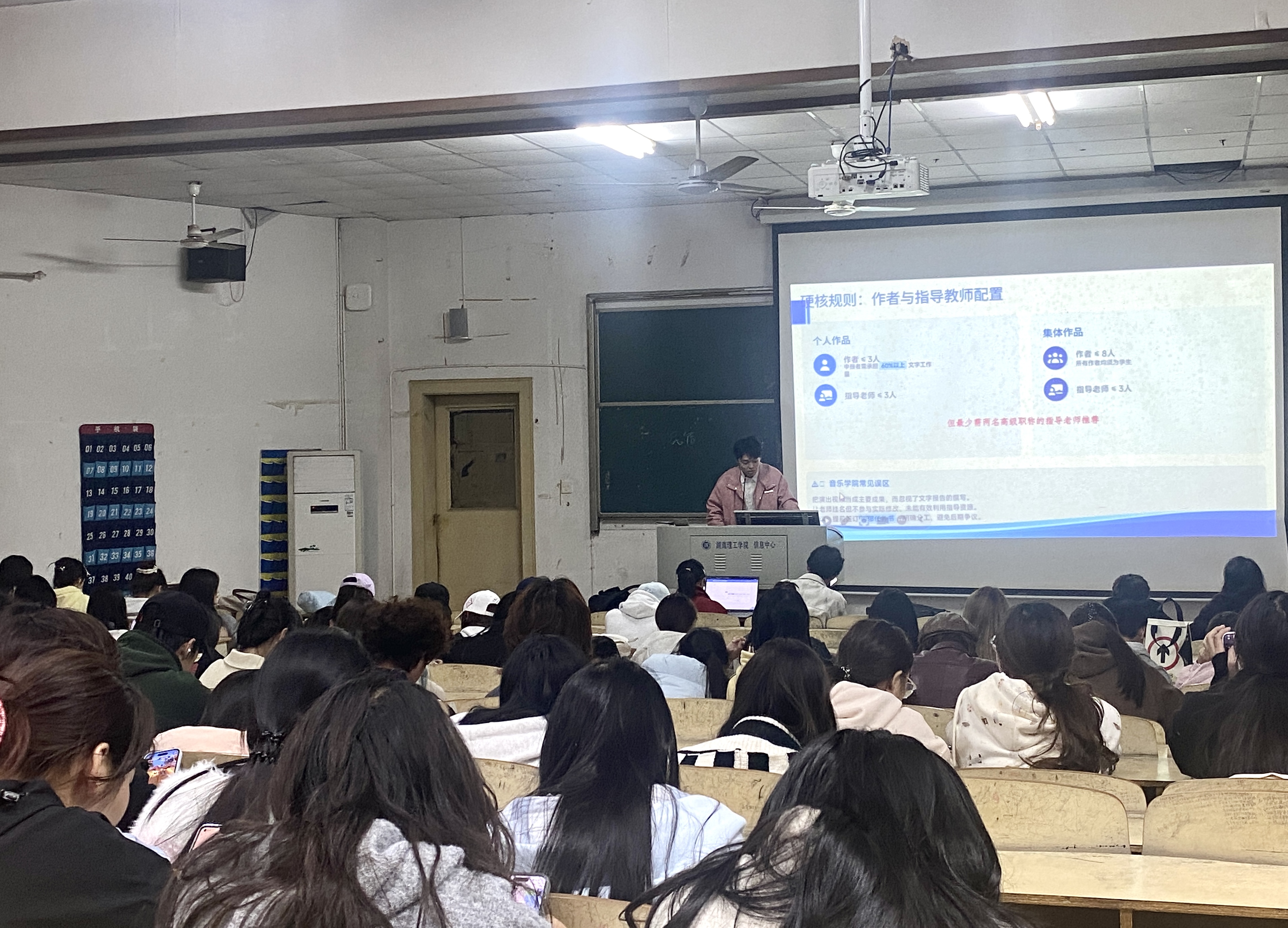 2025年10月26日晚,学院在2T1教室举办“挑战杯”大学生课外学术科技作品竞赛(简称“大挑”)赛前预热讲座。本次讲座由院团学分会学术科研部部长秦瑞泽主讲,讲座内容涵盖竞赛规则解读、备赛重点讲解、常见问题答疑,帮助同学们明确备赛方向。