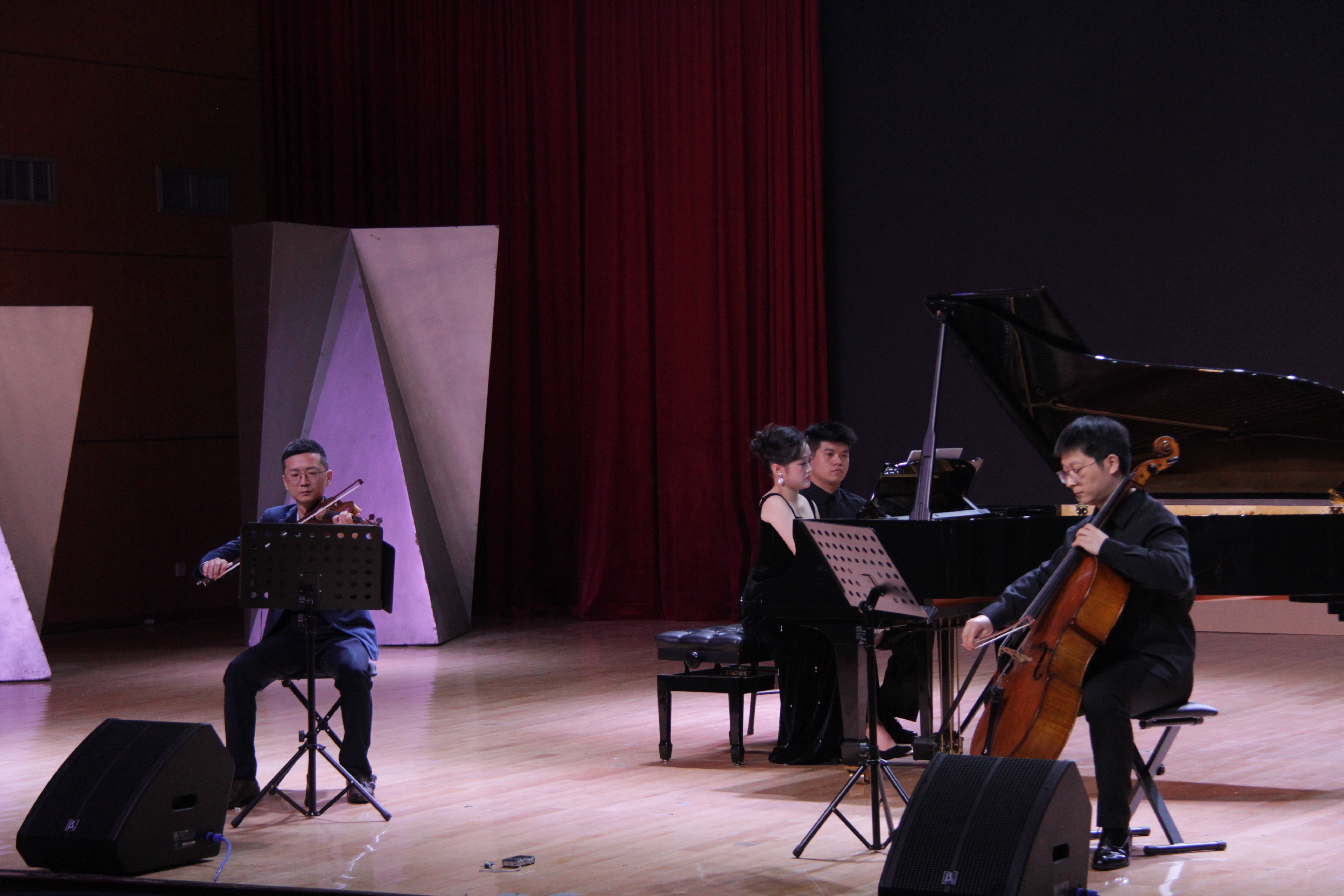 音乐会分为上下半场,共呈现6首曲目。上半场以《勃拉姆斯叙事曲op.118 no.3》开篇,旋律深沉诗意,如无声史诗在琴键铺展;随后演绎的《肖邦辉煌变奏曲op.12》与《梅西安前奏曲no.4》,凭借指尖灵动细腻的表达,完成了一场跨越时空的音乐对话。下半场以《为钢琴而作》启幕,通过前奏曲的典雅与托卡塔的力量,尽显钢琴丰富表现力;《梅花三弄》以清雅旋律及三次变奏,诠释出梅花傲雪凌霜的高洁品格;压轴的《四季—冬》三重奏,将钢琴、小提琴与大提琴音色交织,巧妙融合冬日清冷与内心温暖,勾勒出鲜活的冬日图景。
