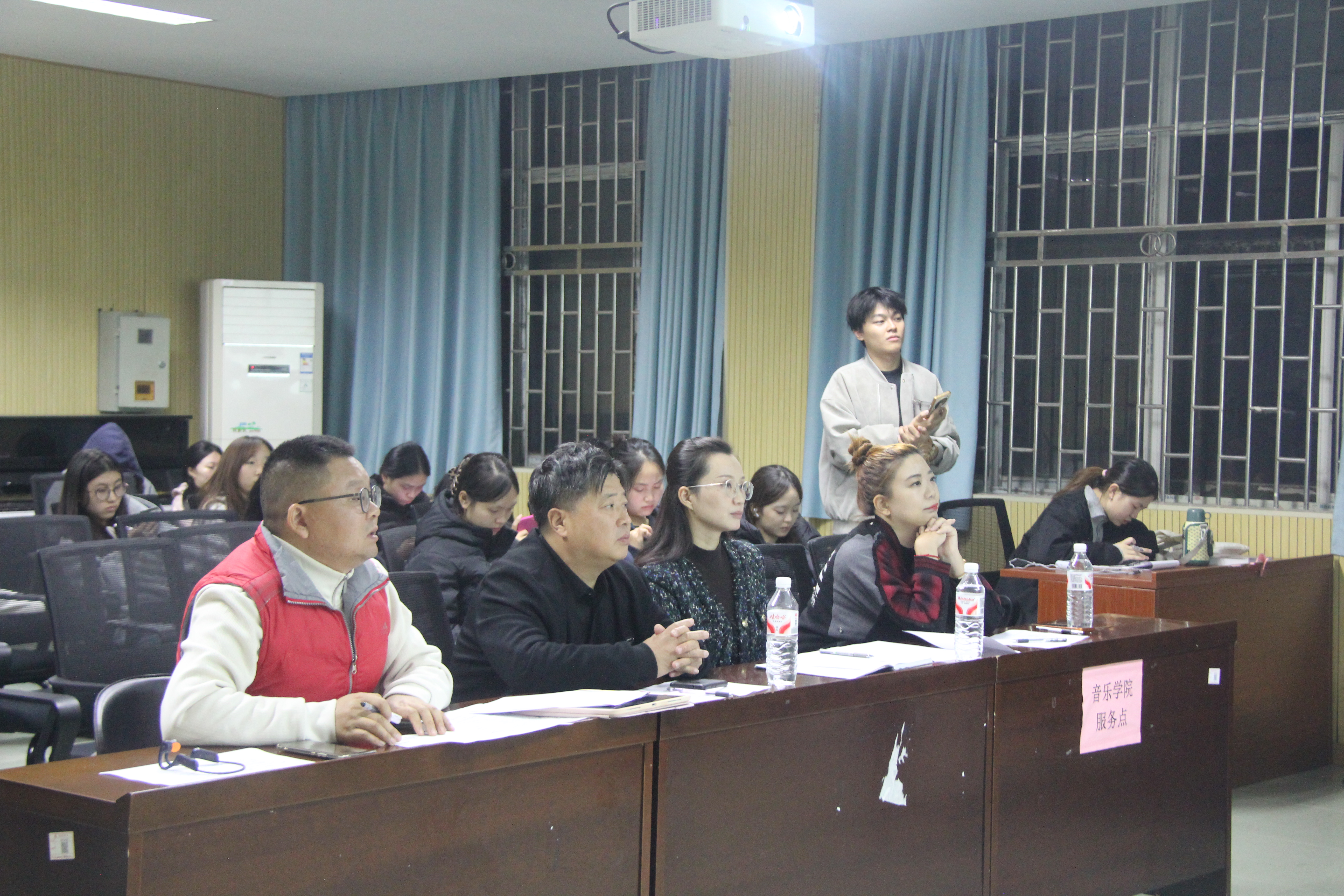 2025年11月12日晚,音乐学院在欣赏室成功举办“挑战杯”大学生课外学术科技作品竞赛。音乐学院副院长刘栋梁、教师刘海波、蓝于兰和刘紫微担任本次比赛评委。