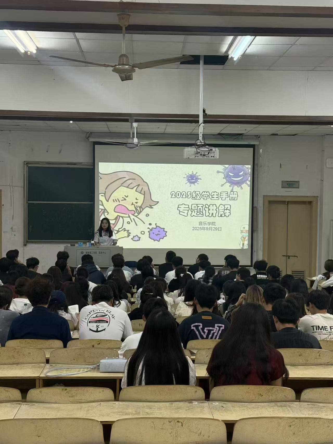 2025年9月30日上午,音乐学院在2T1召开了2025级新生的《学生手册》专题教育讲座,由辅导员助理蔡凡主讲,2025级全体新生参加。