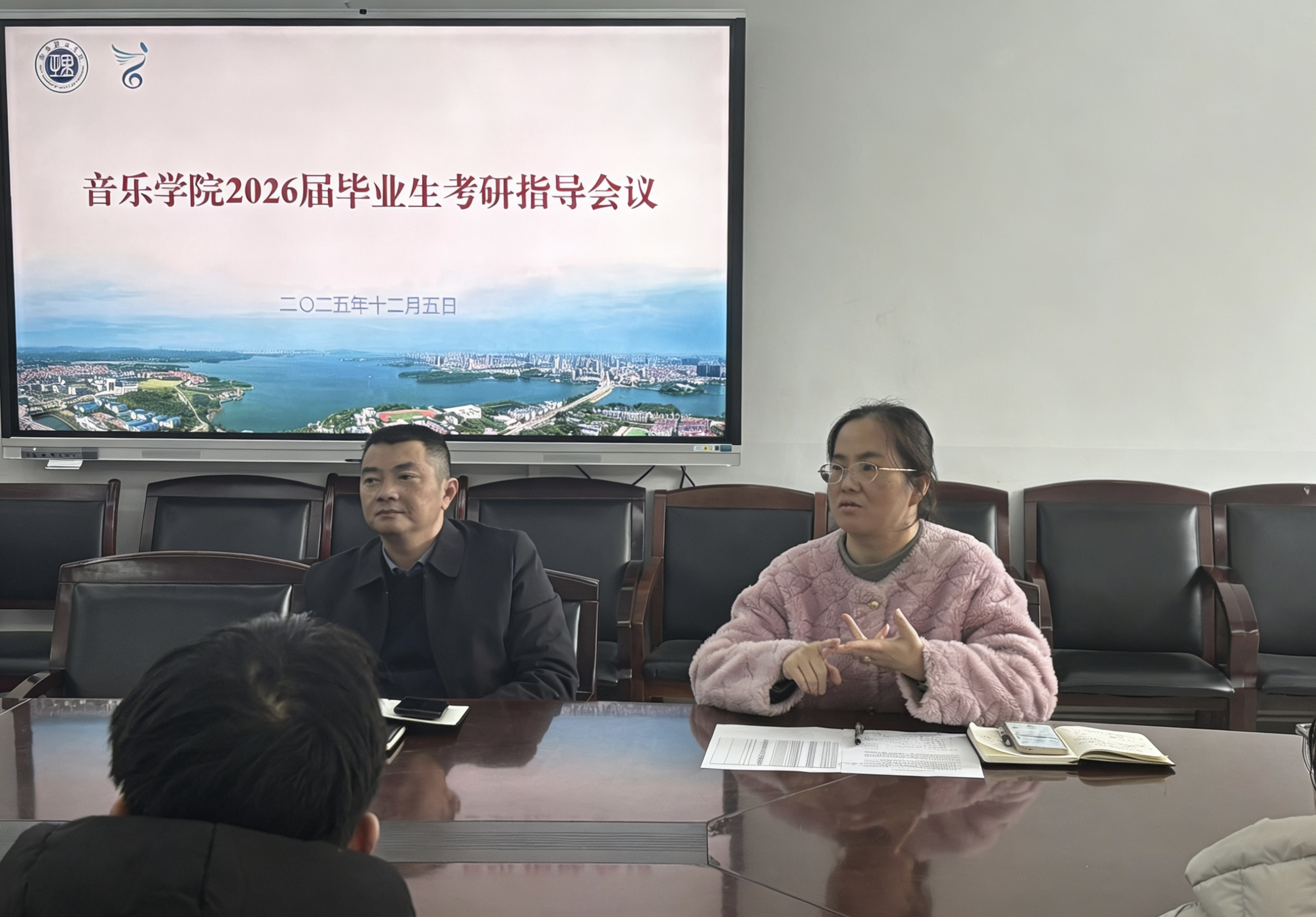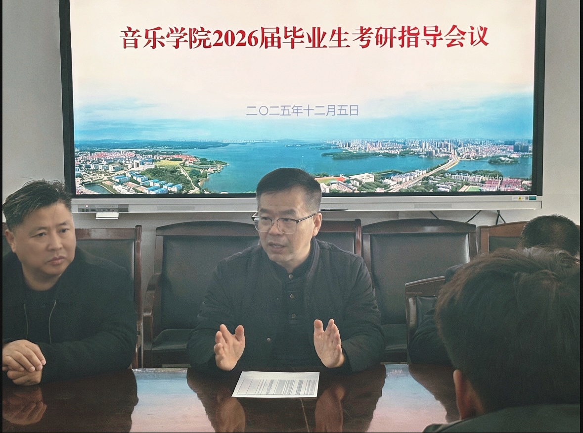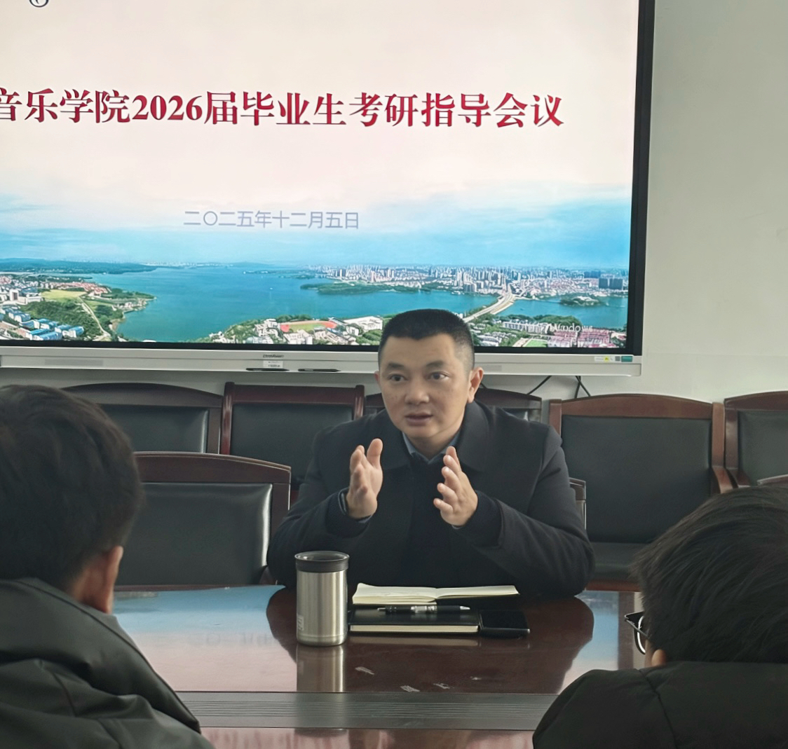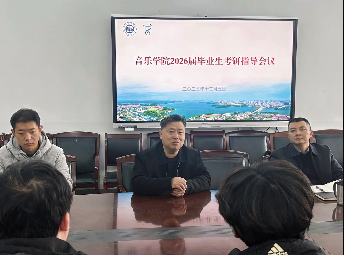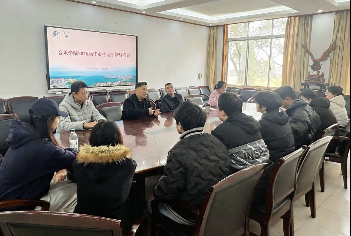为助力2026届毕业生明确考研方向,科学备战,2025年12月5日,音乐学院于大会议室召开考研指导会议。主持学院党委工作的副书记喻俊、主持学院行政工作的副院长庞毅、副书记蔡奕、副院长刘栋梁以及2022级辅导员孙征老师出席指导会,2022级部分考研学生参加。