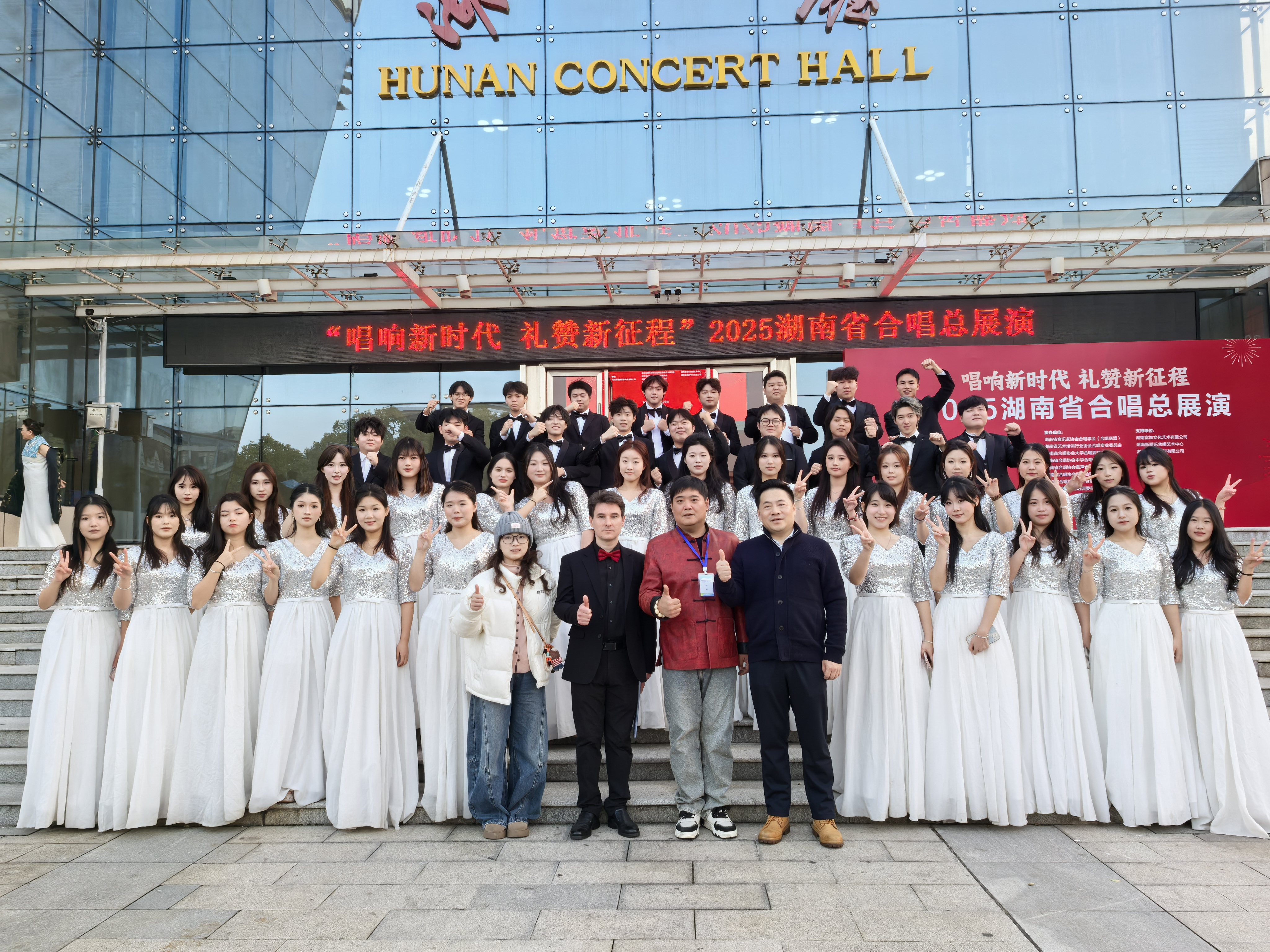 在近日举办的“唱响新时代·礼赞新征程”2025湖南省合唱总展演活动中,我院湖逦合唱团以精湛的专业水准和出色的艺术表现,从全省优秀团队中脱颖而出,荣获展演金奖。同时,张卓然老师荣获最佳指挥奖,伊利亚老师荣获最佳伴奏奖,师生同获殊荣,充分展现了我院的整体艺术实力。