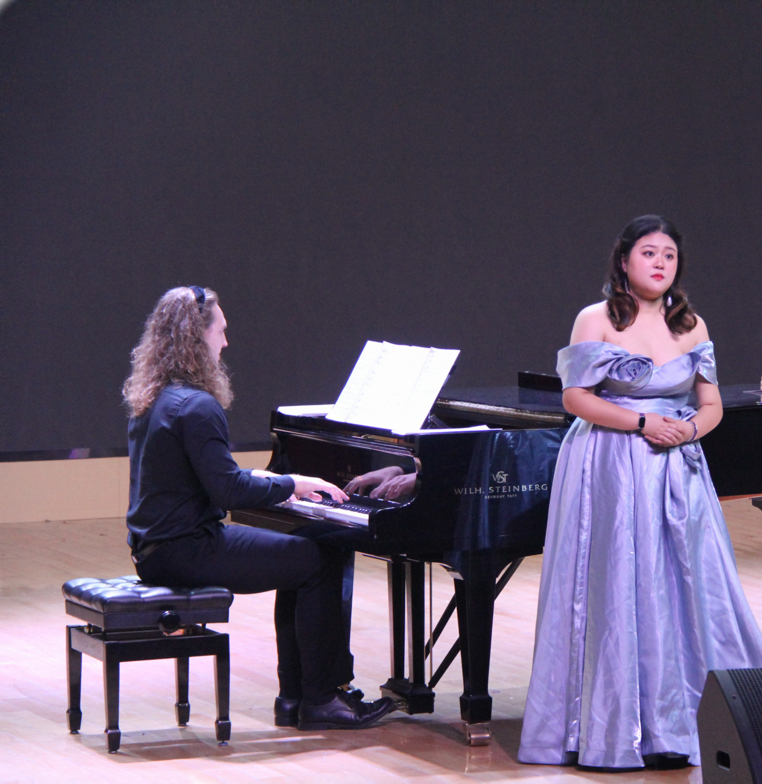 整场音乐会,旷奕以扎实的专业功底、丰富的情感层次,完美诠释了十余首风格各异的声乐作品,赢得了现场师生与观众的热烈掌声。她借旋律纽带贯通传统与现代,以专业底蕴承载家国情思,既是当前学业成果的生动展示,也是开启未来艺术长路的嘹亮前奏。