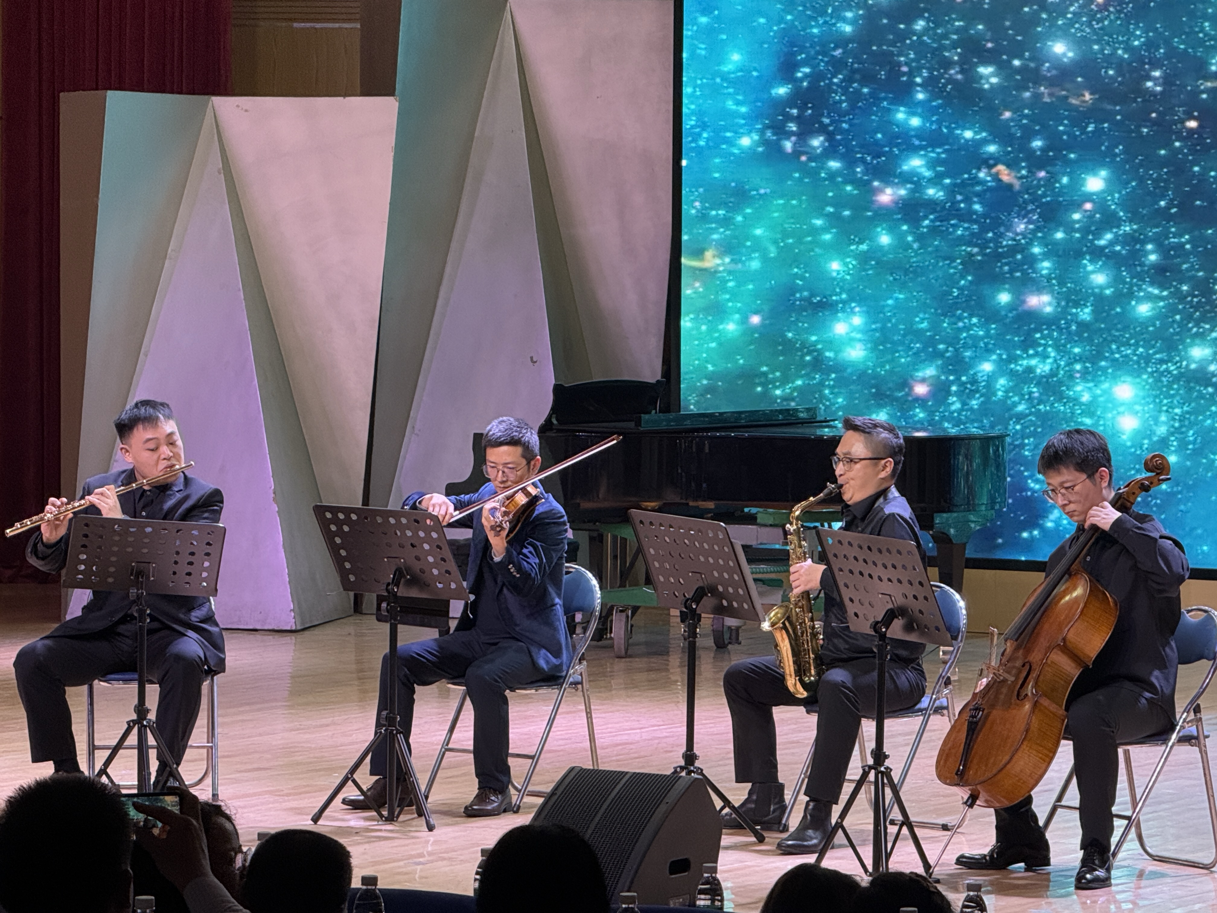 2025年10月31日晚,由湖南理工学院党委宣传部、党委学工部、教务处、研究生工作部主办,音乐学院承办的湖南理工学院校园美育系列活动——中外器乐专场音乐会在音乐学院音乐厅隆重举行,学校党委书记张国云、党委委员、组织部部长胡文静,学校职能部门和各学院师生代表参加了此次音乐会。张仲琪、关源渊担任本场音乐会的主持人,带领大家共赴这场融汇中外的艺术之旅。