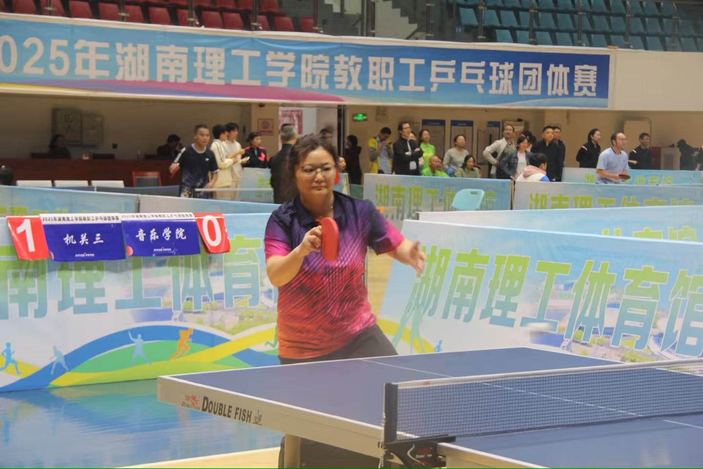 2025年11月15日,湖南理工学院“理工杯”教职工乒乓球赛在南院体育馆主馆火热开赛。音乐学院积极响应学校号召,组建教职工代表队奋勇出征,与经济与管理学院、化工学院等队伍同台竞技,在方寸球台间书写拼搏篇章。