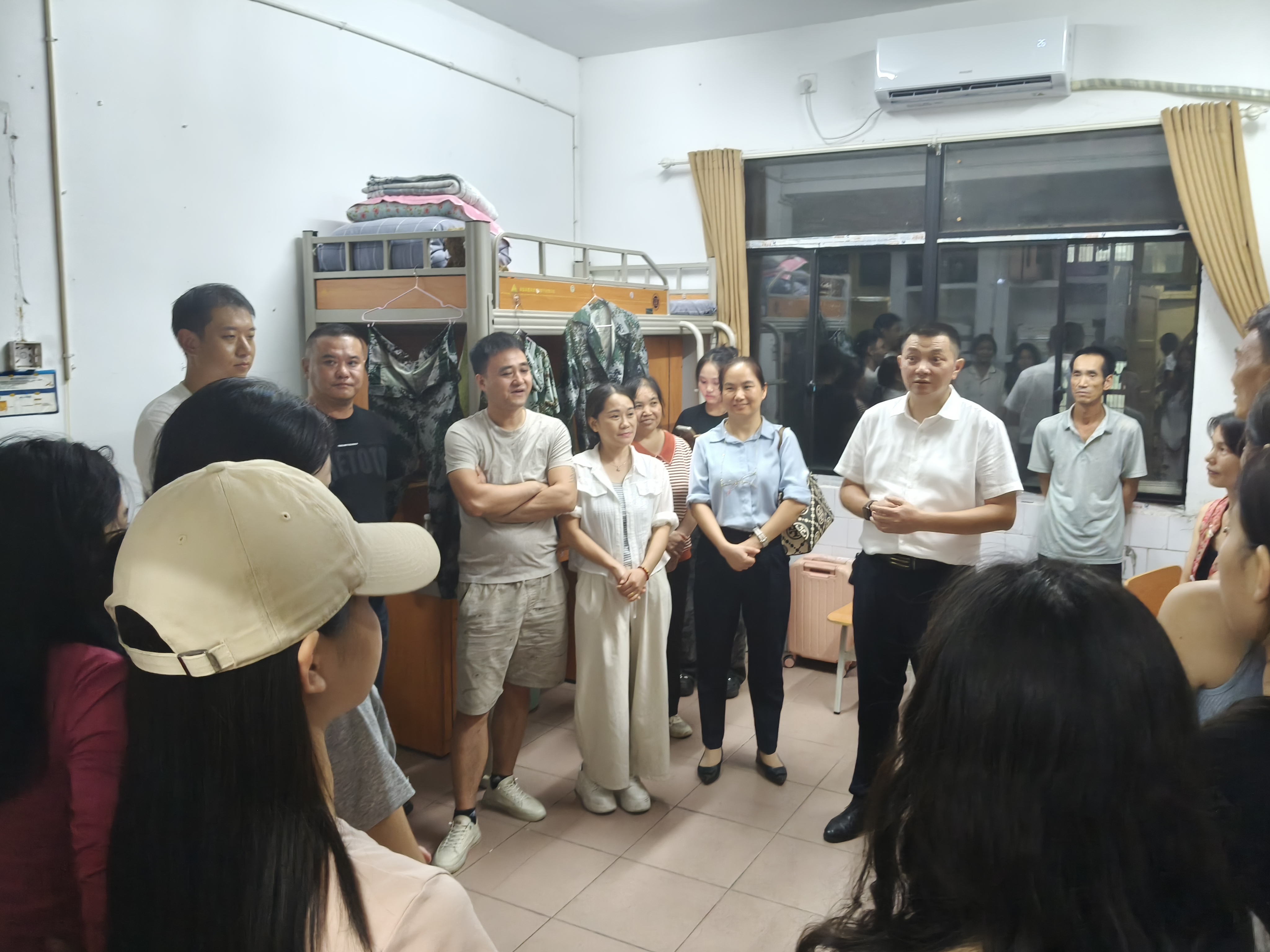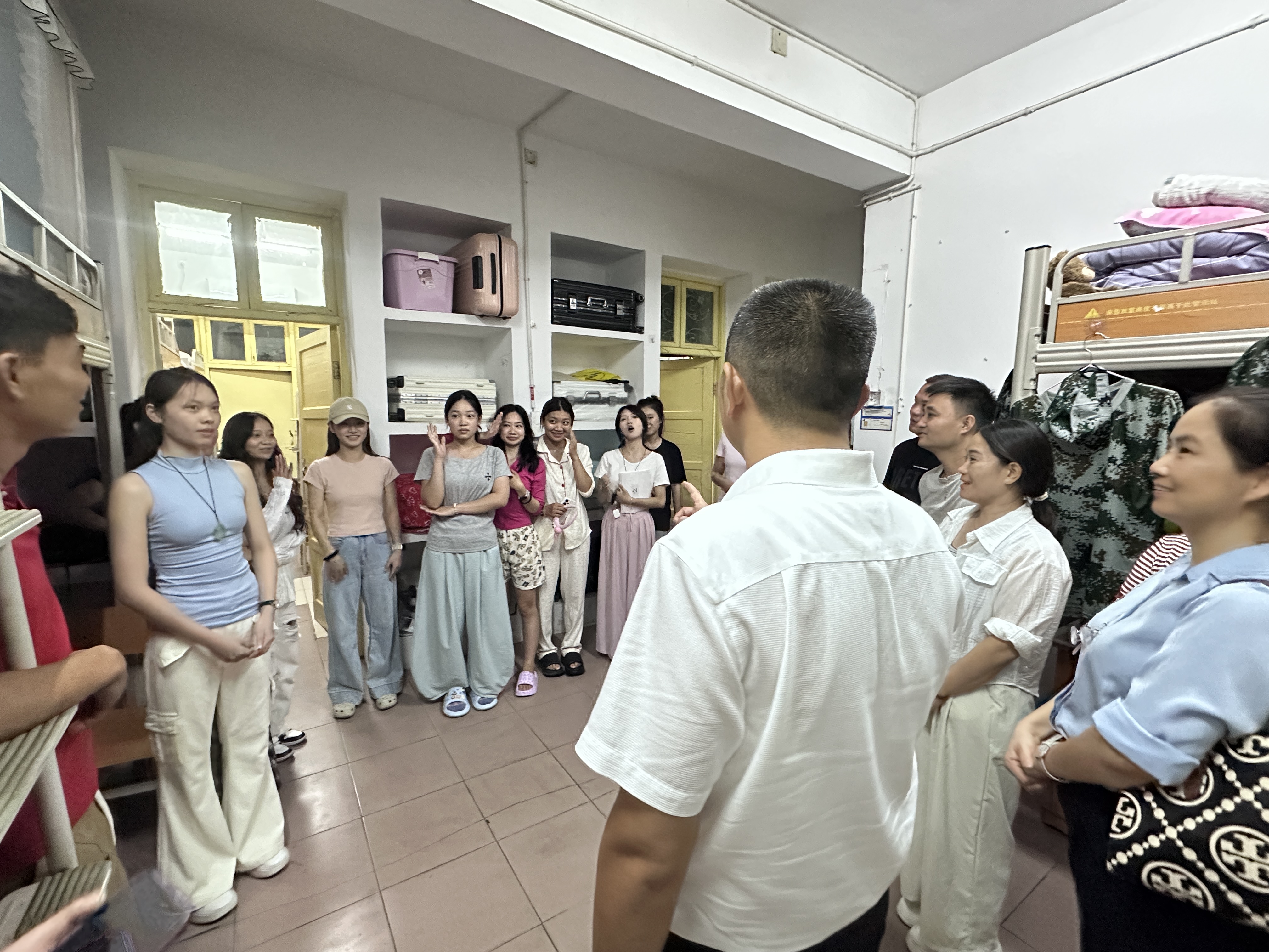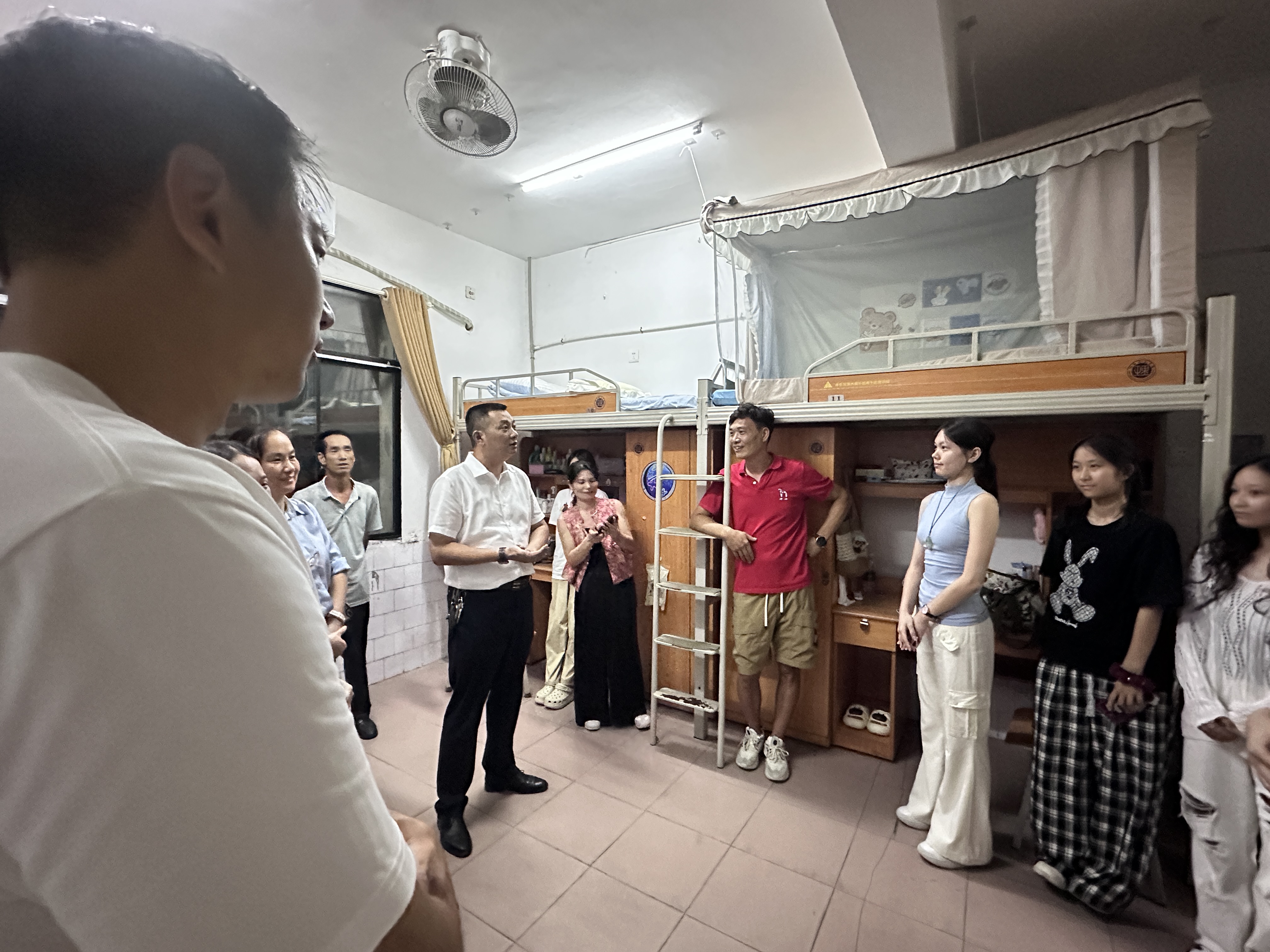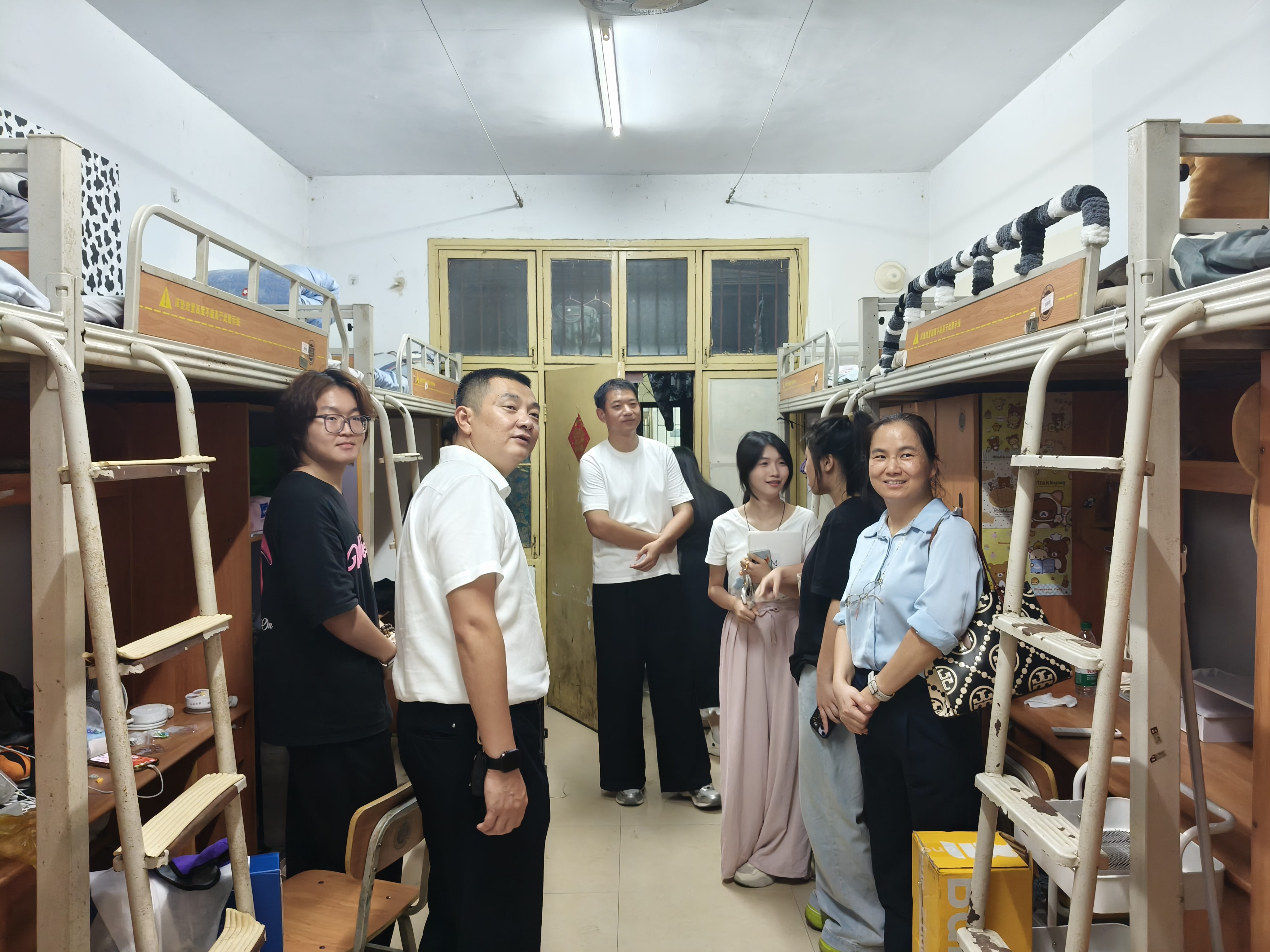 2025年9月13日晚,我院党委副书记喻俊、党委副书记蔡奕、辅导员孙征带领学生助理班主任深入2025级新生宿舍,开展走访慰问活动。