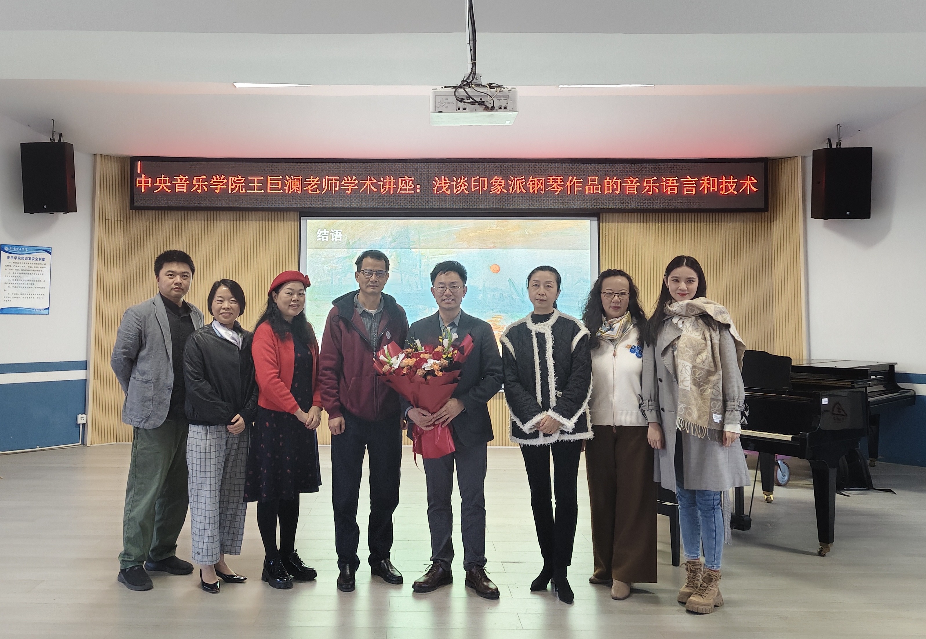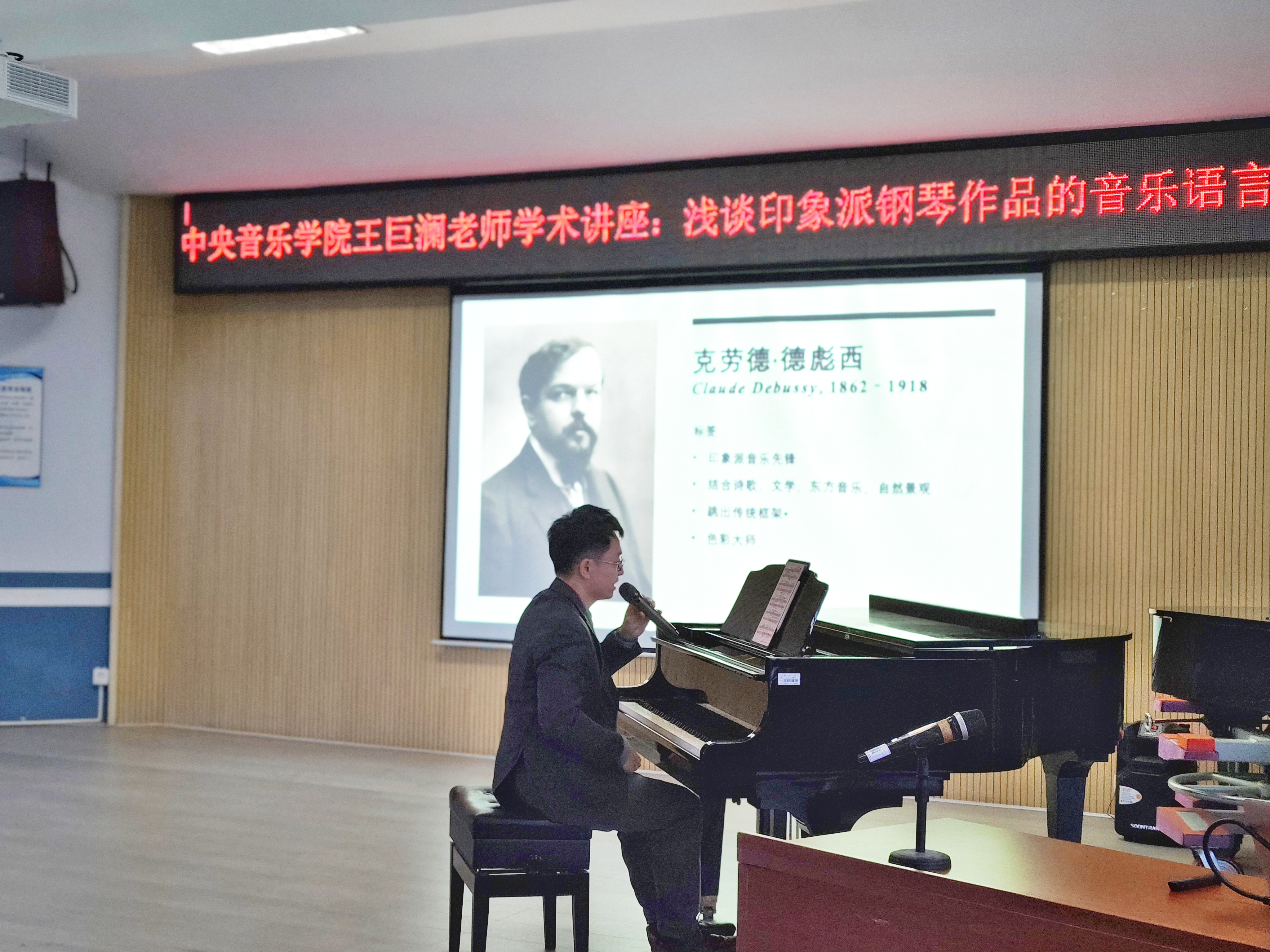 2025年10月21日下午,湖南理工学院音乐学院于1T2教室举办学术讲座,特邀中央音乐学院王巨澜老师主讲“印象派钢琴作品的音乐语言与技术”。学院钢琴教研室教师及部分学生到场聆听。