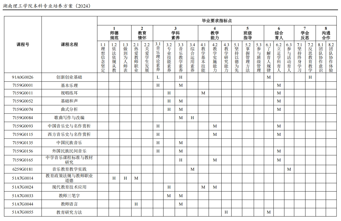 目标 3(教学能力):具有丰富的教育教学知识,能综合运用音乐学、教育学、心理学等有关知识进行中学音乐教学设计、课堂教学、教学评价、课程开发与课题研究。具有启迪学生理性思维、培养学生创新意识,提高学生发现问题、提出问题、分析问题和解决问题的能力。